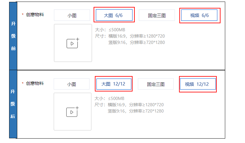 为进一步帮助客户提升程序化创意的丰富度,提升获客能力,本次程序化创意将进行功能和策略升级,提升大图/视频物料上传量级的上限,并支持互动图物料的上传。