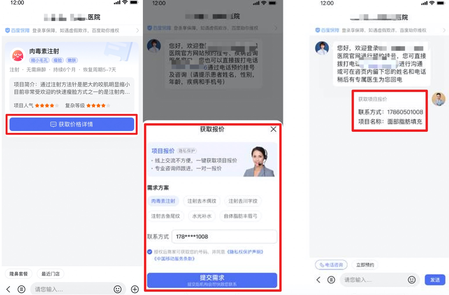 5、第三方咨询工具端的客服侧,则根据网民提交的内容,以结构化消息形式进行推送; 如“如【提交项目报价单】联系方式:xxxx。咨询xxx、xxx、xxx 项目价格)“。